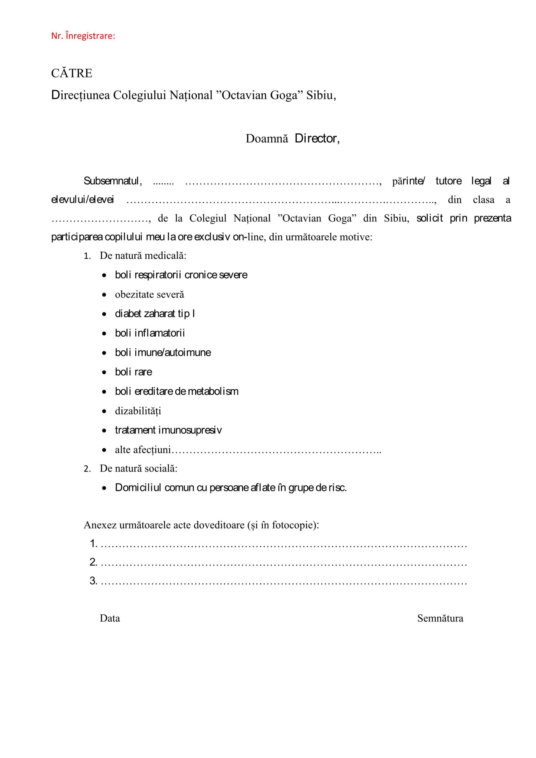 (1) Preșcolarii/Elevii cu vârstă mai mică de 12 ani, care fac parte dintr-o grupă de risc, respectiv cei diagnosticați cu boli respiratorii cronice severe, boli cardiovasculare, obezitate severă, diabet zaharat tip I, boli inflamatorii, boli imune/ autoimune, boli rare, boli ereditare de metabolism, dizabilități, tratament imunosupresiv sau alte afecțiuni cronice, cu avizul și recomandările specifice ale medicului curant și cu acordul scris al părinților, pot fi scutiți de prezența fizică în școală.