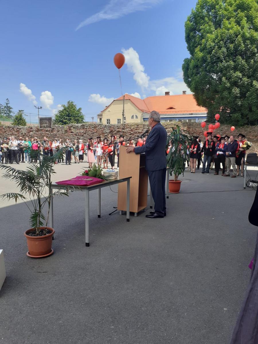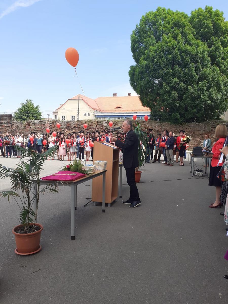 “Iată-ne din nou față în față, profesori, elevi și părinți, uniți într-o emoție comună și înălțătoare, care ne face atât de frumoși, încât și soarele s-a oprit să ne privească, după o zi care părea atât de mohorâtă. Nu, n-o să vă spun despre drumul care se încheie în această zi de 4 iunie 2021, nici despre calea ce se deschide în fața voastră de acum încolo. Sunteți, probabil, conștienți, că viața e o permanentă călătorie întru devenire, iar rostul nostrum e sa găsim nu calea cea mai ușoară, ci aceea care ne va duce, în ciuda tuturor obstacolelor, spre citadela propriei noastre personalități, spre idealul de a fi oameni între oameni, clădind mereu, necontenit, drumuri către ceilalți. Pentru că acesta este rolul nostru, de a ajunge piatra de temelie pentru cei care pornesc, la rândul lor, în viață, și mărturie de valoare a celor care ne-au servit, pe măsură ce am crescut, ca trepte spre desăvârșire.