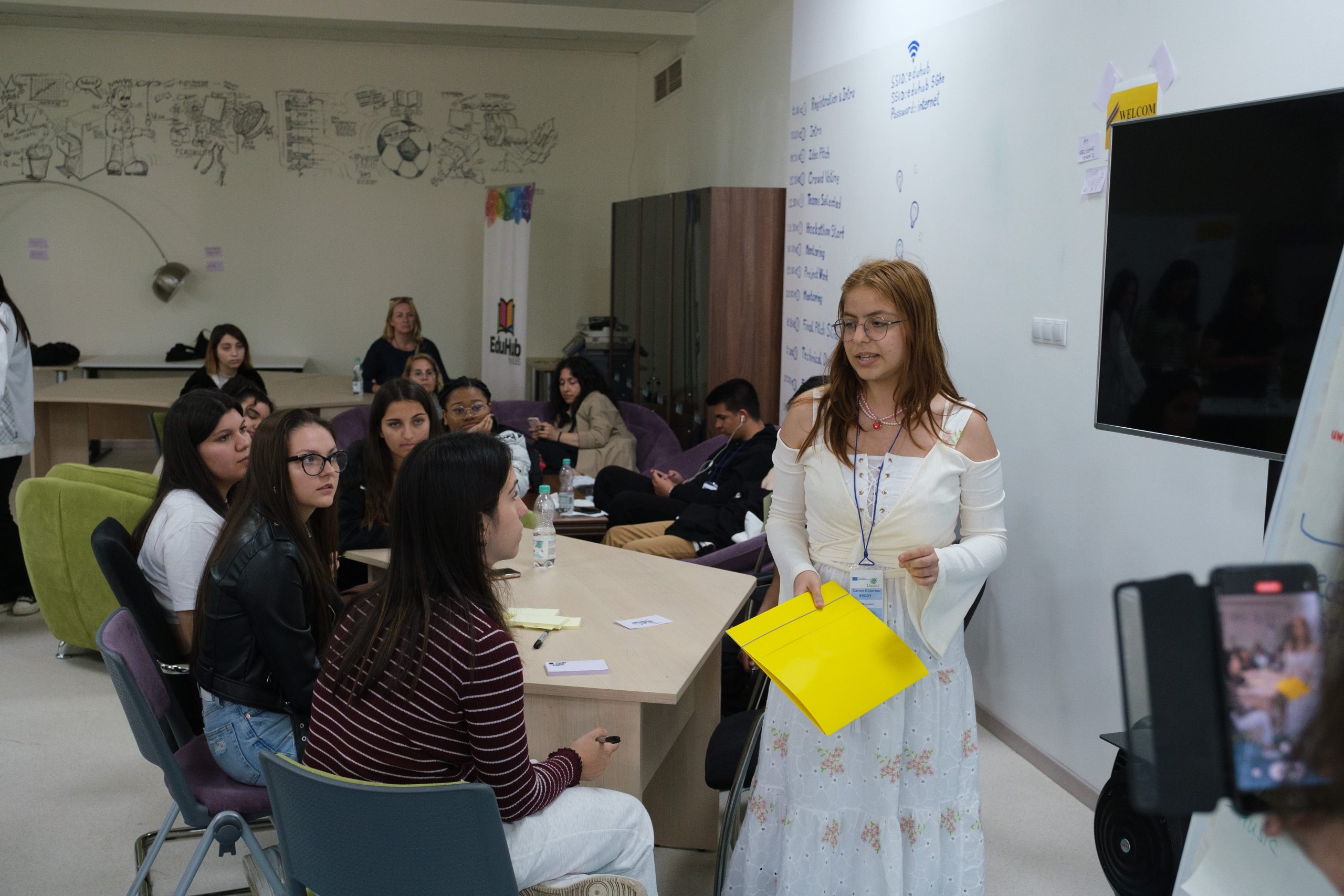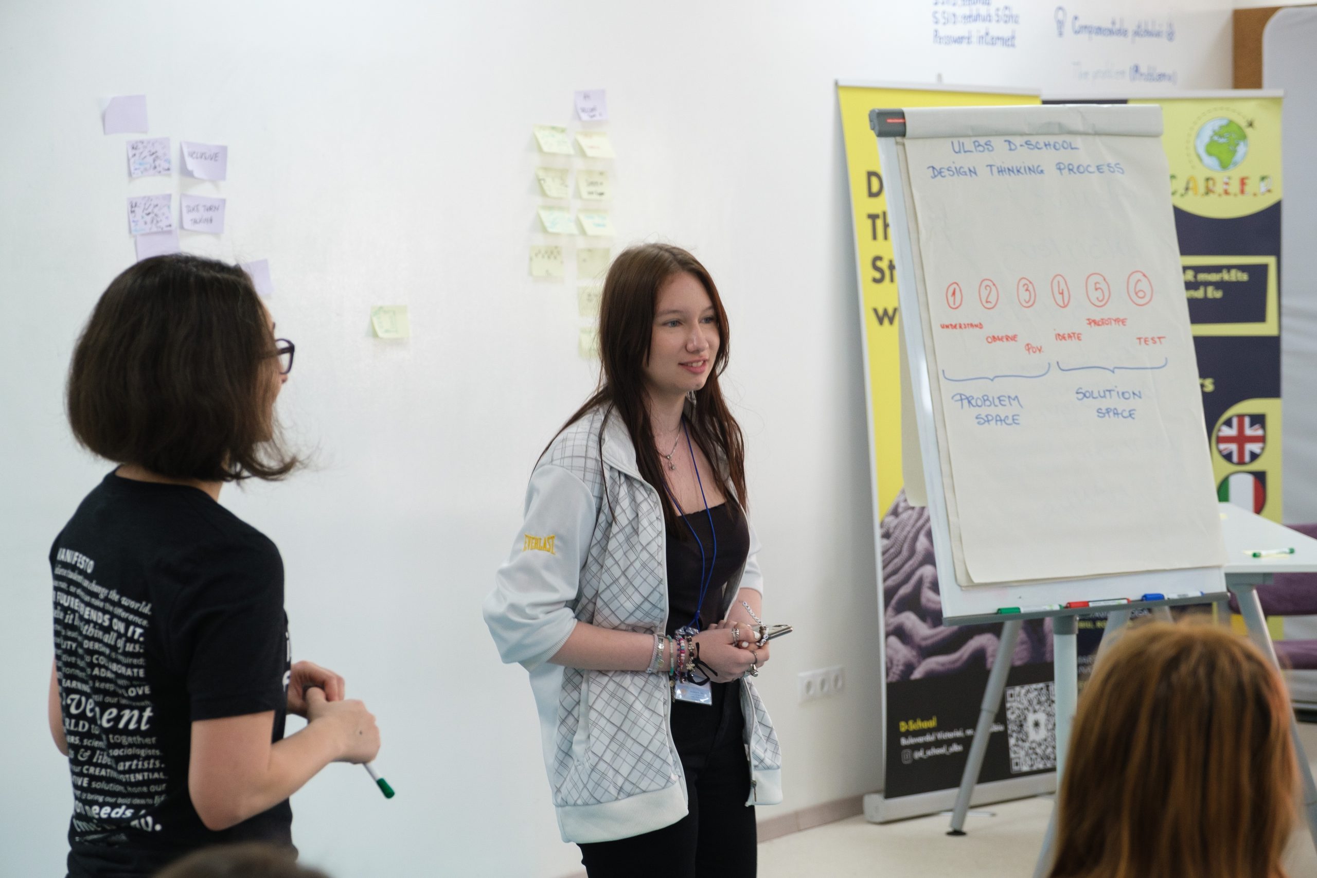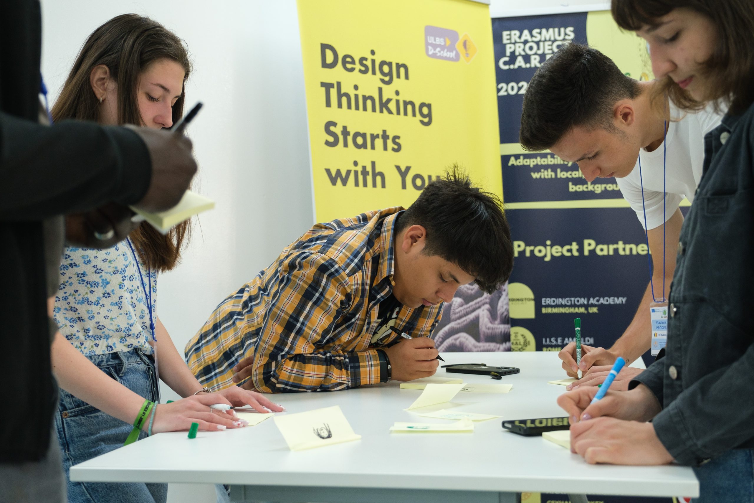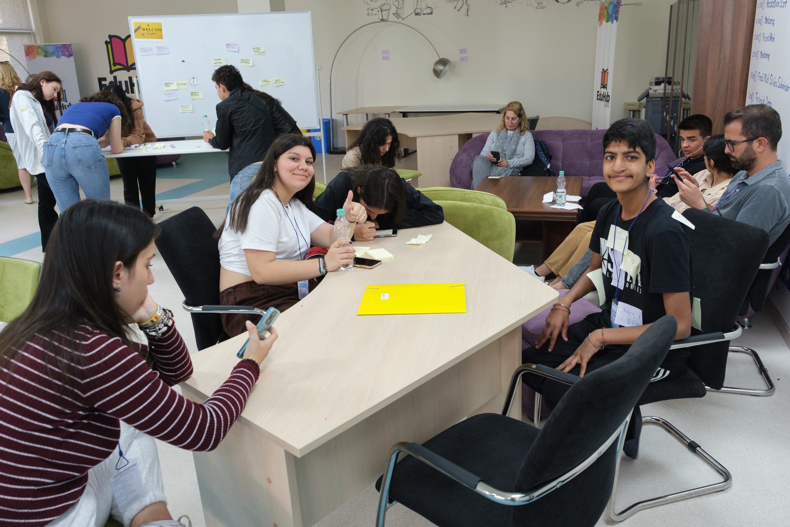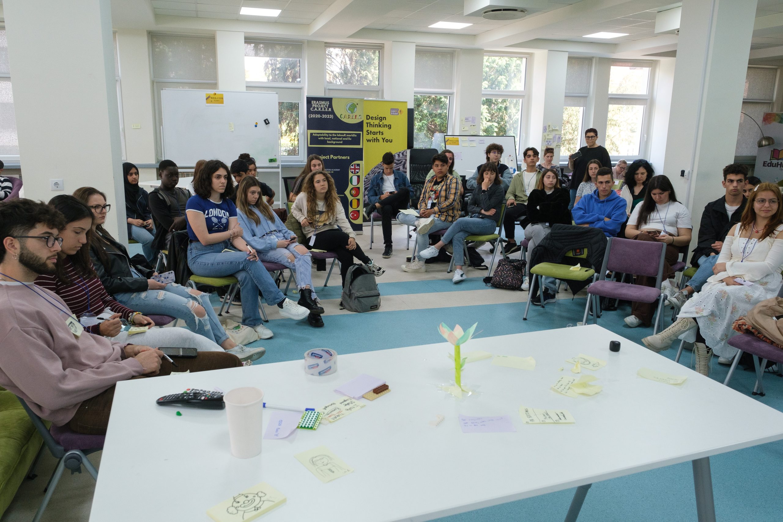 În cadrul reuniunii de proiect Erasmus+ C.A.R.E.E.R din luna mai 2023, participanții au fost invitați să încerce un nou mod de abordare a problemelor și soluțiilor, în cadrul unui atelier de Design Thinking în care elevii au explorat influențele spațiului asupra colaborării.