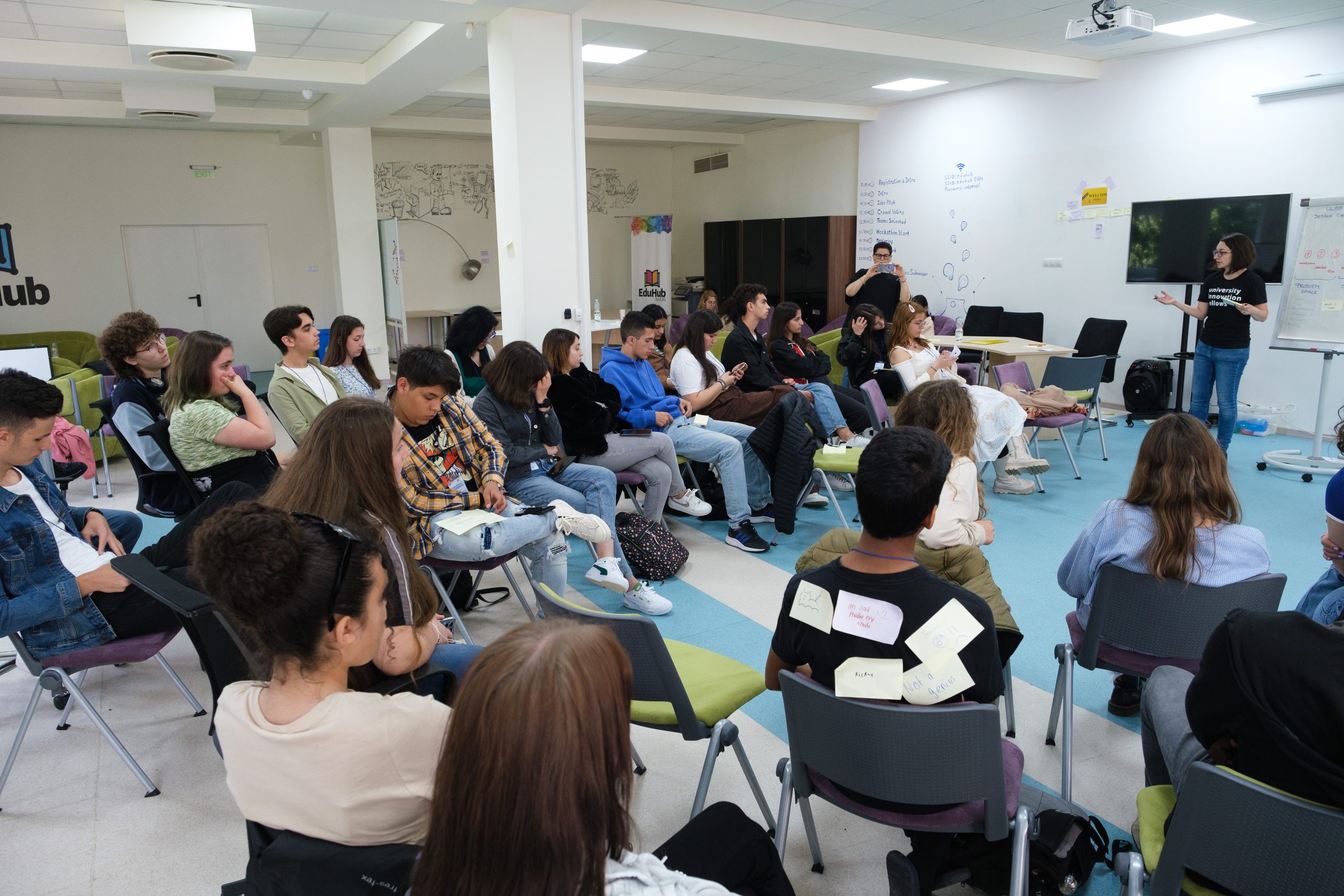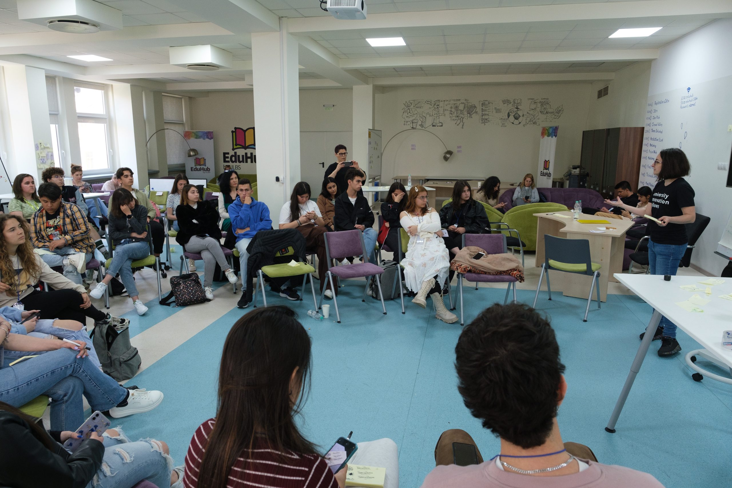 ULBS D-School, prin reprezentanta sa, dna Raluca Bârsan, i-a provocat să identifice posibile bariere în sala în care au lucrat şi să prototipeze şi testeze soluții. Echipele nu s-au limitat doar la mobilier şi aşezarea meselor, ci la mediul de lucru (muzică, plante), includerea zonelor pentru obiecte personale şi fluxul de lucru şi mişcare.