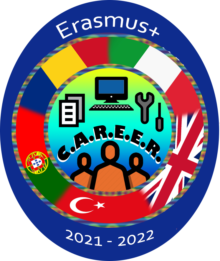 Proiectul C.A.R.E.E.R. (PROJECT N° 2020-1-UK01-KA229-078953) beneficiază de sprijin financiar din partea Comisiei Europene prin programul Erasmus+ Cooperation for innovation and the exchange of good practices – KA229 – School Exchange Partnerships.